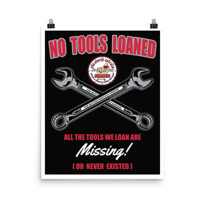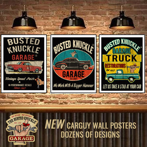 This poster has a partly glossy, partly matte finish and it'll add a touch of class (?), humor (?) to any garage, shop or den. Put your frame around it and your buddies might even hang for a while (if you want them to).