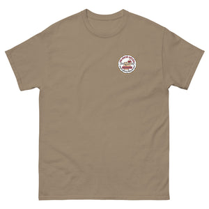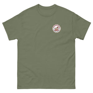 The 100% Pre-Shrunk Cotton men's HEAVY-WEIGHT Tee will help you land a more structured look. It sits nicely, maintains sharp lines around the edges, and goes perfectly with layered streetwear outfits. Might even help you find that elusive part hidden in the weeds.