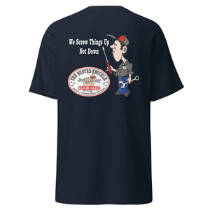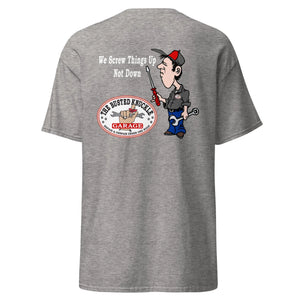 The 100% Pre-Shrunk Cotton men's HEAVY-WEIGHT Tee will help you land a more structured look. It sits nicely, maintains sharp lines around the edges, and goes perfectly with layered streetwear outfits. Twist wrenches in style today!