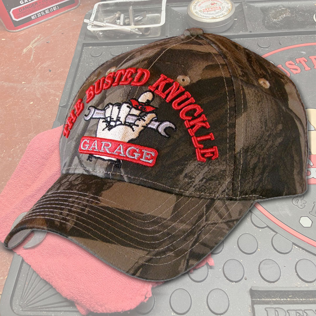 Be stylin' under the hood, at the show, at the race, in the garage, at the.... Well, you get the point Busted Knuckle Garage Ball Caps are just as important to your head as a valve cover is to a cylinder head. (Keeps the oil in place?). Select from anyone of our growing collection of Trucker Style caps and be the fashionista you always wanted to be.