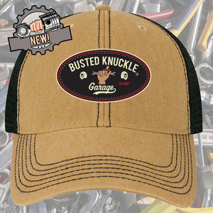 The Busted Knuckle Garage Car Guy Vintage Style Trucker Ball Cap boasts a classic design that appeals to car enthusiasts and casual wearers alike. Its khaki fabric on a black base offers a striking contrast, making it a must-have accessory for those who appreciate automotive culture. The vintage style enhances its charm, providing a nostalgic touch without sacrificing modern comfort. This cap is perfect for everyday wear, whether you're working in the garage or enjoying a leisurely day out.