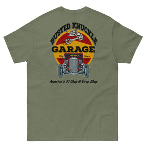 The 100% Pre-Shrunk Cotton men's HEAVY-WEIGHT Tee will help you land a more structured look. It sits nicely, maintains sharp lines around the edges, and goes perfectly with layered streetwear outfits. Might even help you find that elusive part hidden in the weeds.