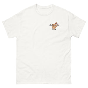 The 100% Pre-Shrunk Cotton men's HEAVY-WEIGHT Tee will help you land a more structured look. It sits nicely, maintains sharp lines around the edges, and goes perfectly with layered streetwear outfits. Might even help you find that elusive part hidden in the weeds.