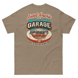 Good Ol' Days are just like Good Ol' Cars, they're built not bought and they will be the best of memories. Celebrate Mechanical Mayhem in Style, Celebrate with The Busted Knuckle Garage. Nicely distressed graphics for mildly distressed Carguys.