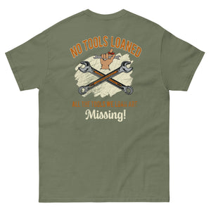 Busted Knuckle Garage Carguy No Tools Loaned Two-Sided Carguy T-Shirt