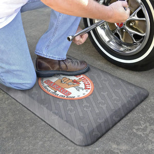 Whether you’re an automotive do-it-yourselfer or seasoned professional, you’re bound to deal with foot, leg, knee or lower back fatigue. It comes with the territory but don’t let it rob you of your joy in the shop. Background printed with wrenches...ya' know...the ones that slip out of your hand.