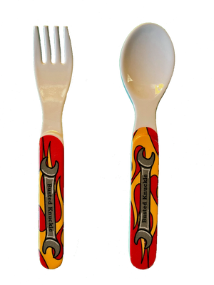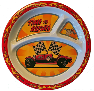 Can't start 'em off too young! When "It's Time to ReFuel", it's time for this BEST SELLER from the Busted Knuckle Garage Tableware set. This handsome 5 piece set may not help the food go down any faster but it's going to look real good while in the process! V'rooom.....