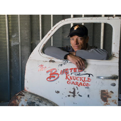 My name is Warren Tracy. I am the owner/developer of the Busted Knuckle Garage automotive lifestyle brand. Thank you for visiting my site. I came up with this idea while living at the bottom of the Grand Canyon, a place that obviously has no cars. Being a car guy however, one morning I woke up to go to work and found a crude cartoon of the Busted Knuckle Garage that I had drawn in my sleep, no knowledge of doing it, trademarked it, worked it and now 20 years later, any and all merchandise sold on the web or in stores was a result of that cartoon. No big, soulless corporation cranking out cheap goodies. Just one guy with a passion for ol’ cars and one lousy guy with a wrench.