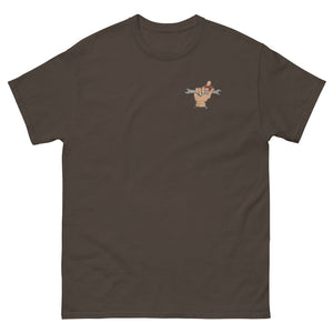The 100% Pre-Shrunk Cotton men's HEAVY-WEIGHT Tee will help you land a more structured look. It sits nicely, maintains sharp lines around the edges, and goes perfectly with layered streetwear outfits. Might even help you find that elusive part hidden in the weeds.