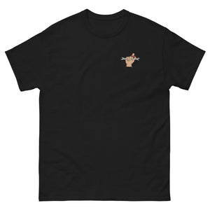 The 100% Pre-Shrunk Cotton men's HEAVY-WEIGHT Tee will help you land a more structured look. It sits nicely, maintains sharp lines around the edges, and goes perfectly with layered streetwear outfits. Might even help you find that elusive part hidden in the weeds.