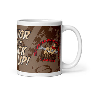 Guaranteed not to leak (unless you break it). Whether you're drinking your morning coffee or need a small drain pan– this mug's for you! It's sturdy and glossy with a cool BKG graphic print that'll withstand the microwave and dishwasher. We can't make your coffee taste better but we can make you look better while sipping away. Full Wrap helps for easy locating.