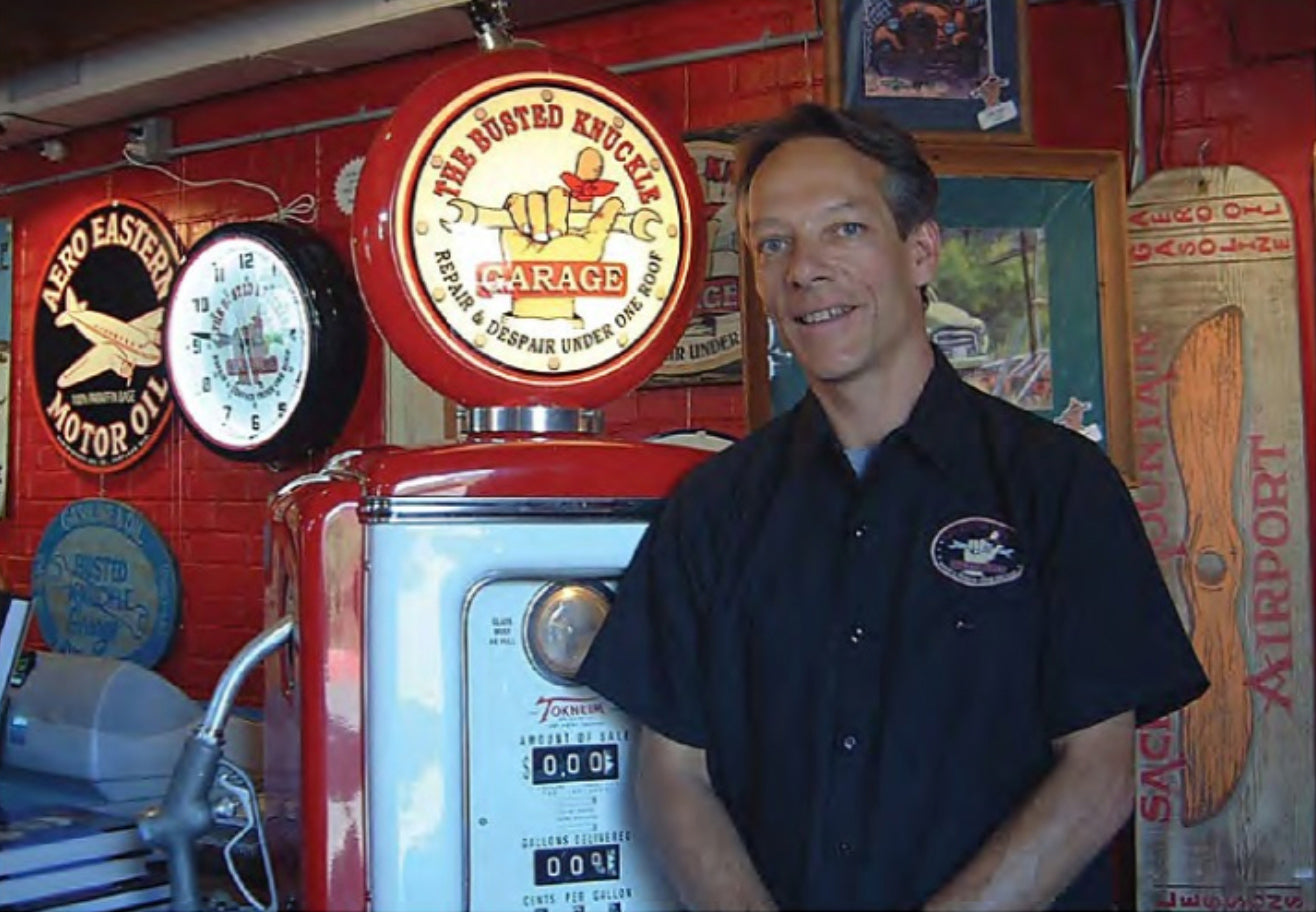 It was in 1997 that Tracy, whose career path has also included mortgage banking, delivering yachts and operating a bicycle shop, met a man making faux-antique distressed wooden signs. He decided to commission some featuring his design, along with the name “The Busted Knuckle Garage,” and posted an ad in an auto magazine.